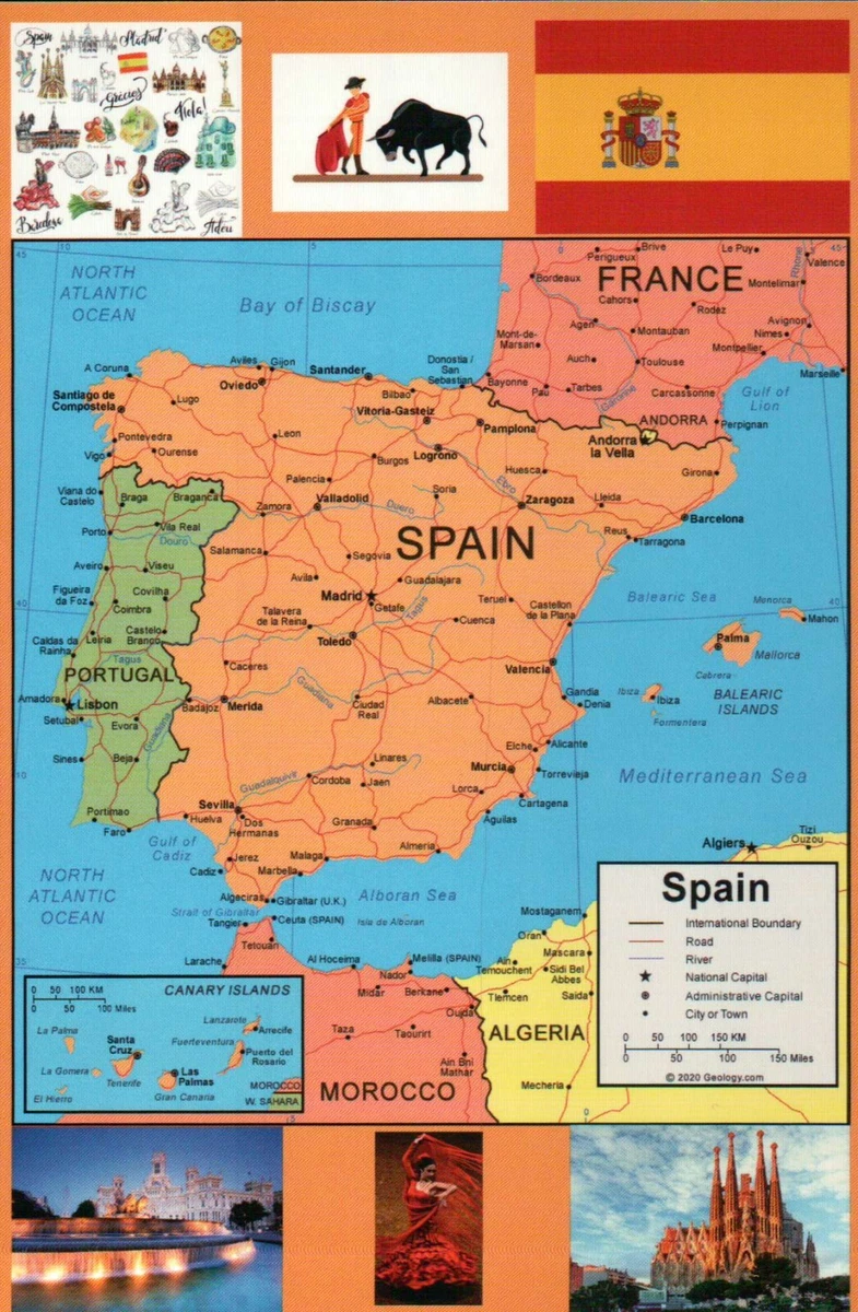 Map of Spain, Flag, Flamenco, Bull Fighting, Madrid Barcelona etc